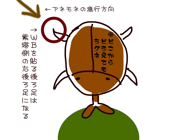 紫塔だと、塔の右側にいつも待機してるようにしてますので、左後ろ足にWBがつくと思います。