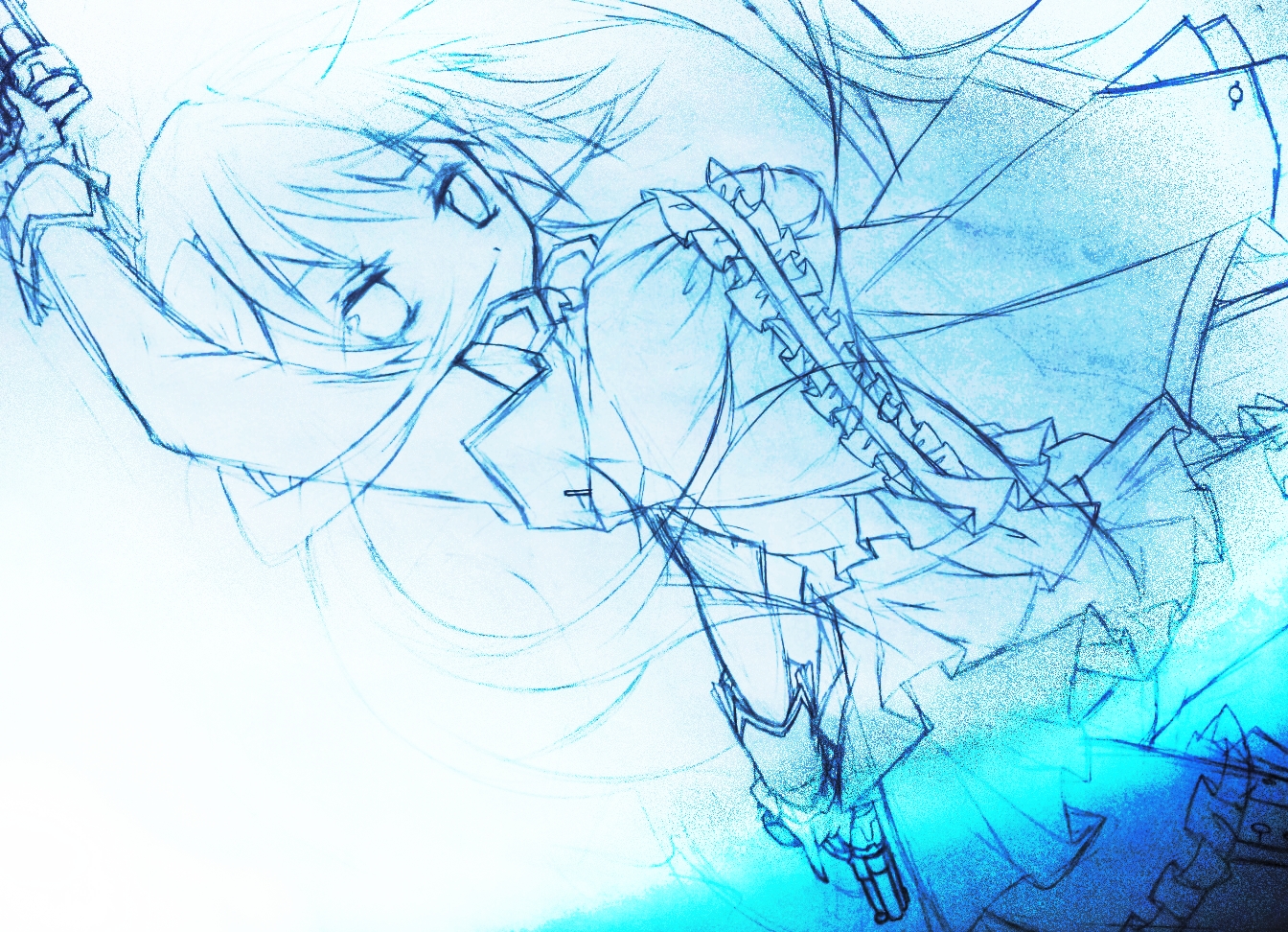 これはまだ下書きです。下書きを加工しまくっただけのラフなので…もちろんこんなラフじゃなくてちゃんと色塗ったものを完成させる予定です。…でも、この加工マジックの方が綺麗な絵に見える気が…げふげふっ。
