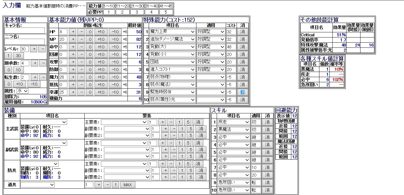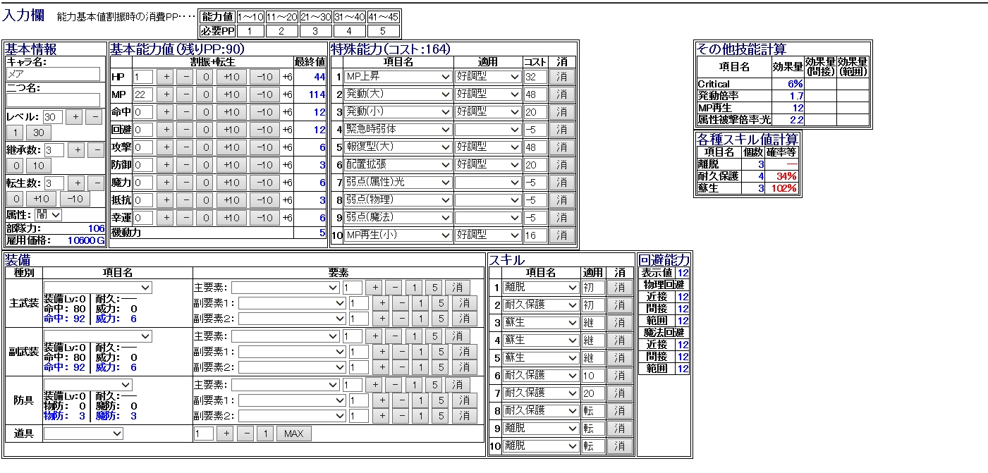 装備が弱いので、なるべく能力で補いつつコスト少なくを頑張りました…w
