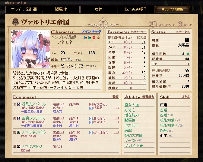 大丈夫、弱点満載で攻撃受ければまず戦闘不能だから…護衛にイシュエルつけるからアネモネはこれでいいの(震え声)。