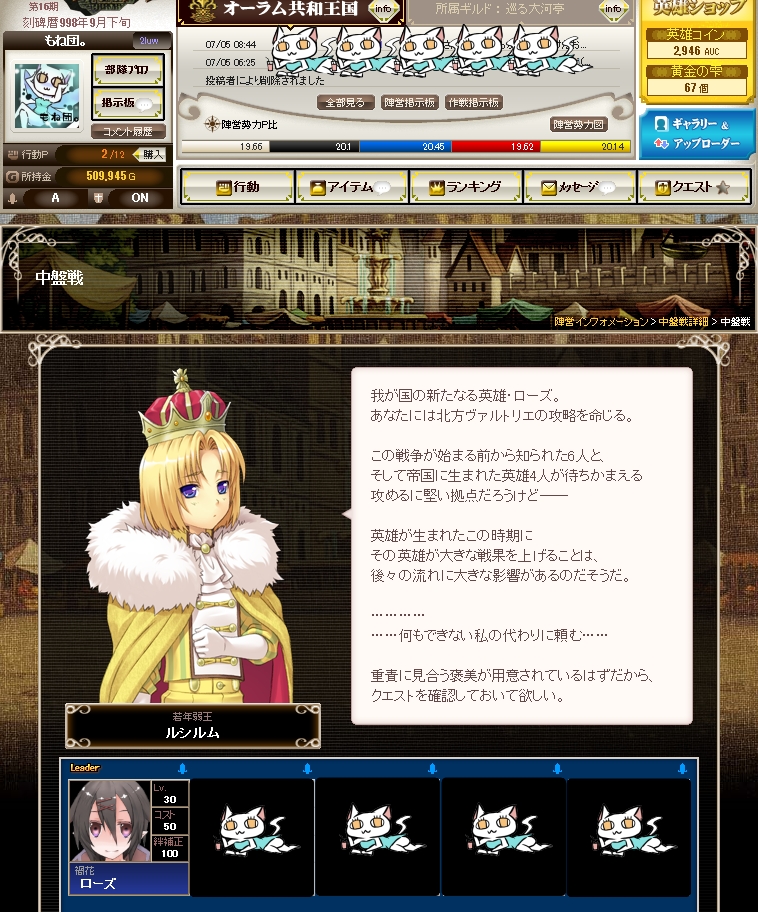 功績上位の方を率いての大きな戦いを指揮する『中盤戦の英雄』となれました!(*´∀`*)