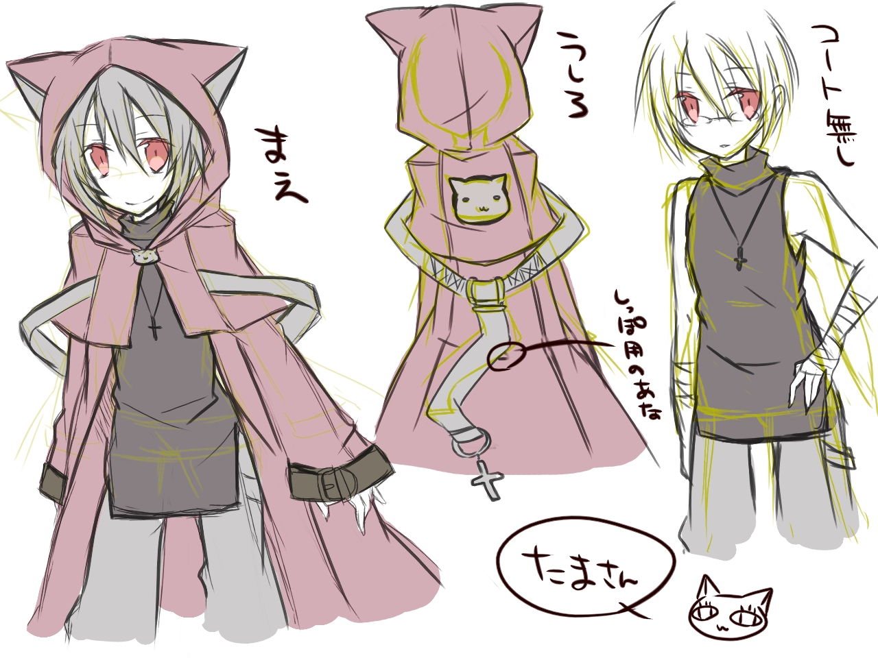 たまさんの服デザインしたので、設定画っぽいの描いたよー(*´ω`*)