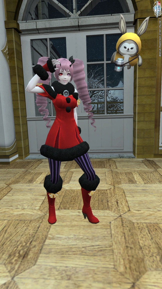 黒ぶちサンタドレス(Dモネ)と、アークスコートM影(メア君)です。