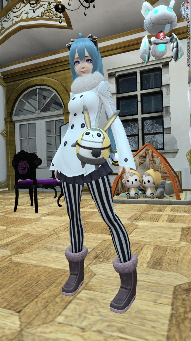 アークスコートF雪にチェック柄タイツ紫という鉄壁装備で女子力もばっちりだぜ!
