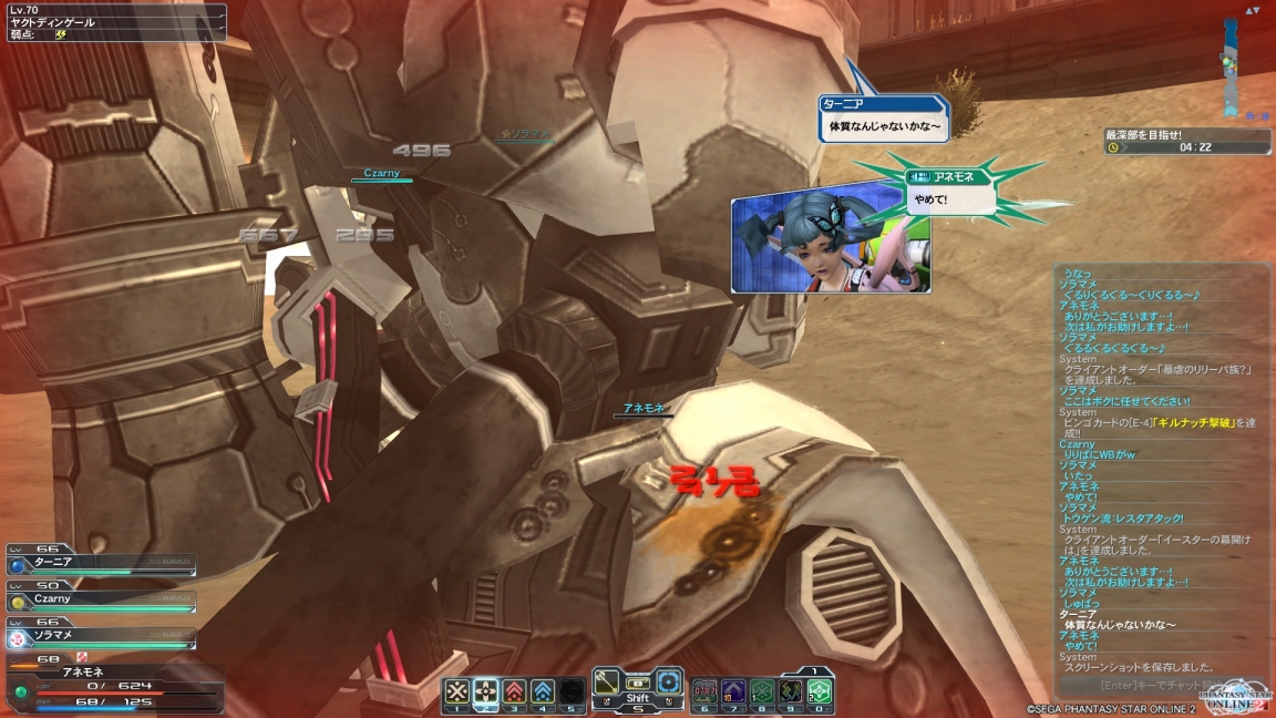 ラスボスのアンゲルをほぼピアッシング+WBのみで撃破したと言ったらターニアちゃんたちに「なぜそんな苦行を!」といわれ、ミケさんにもこのとおりのツッコミを受けましたw