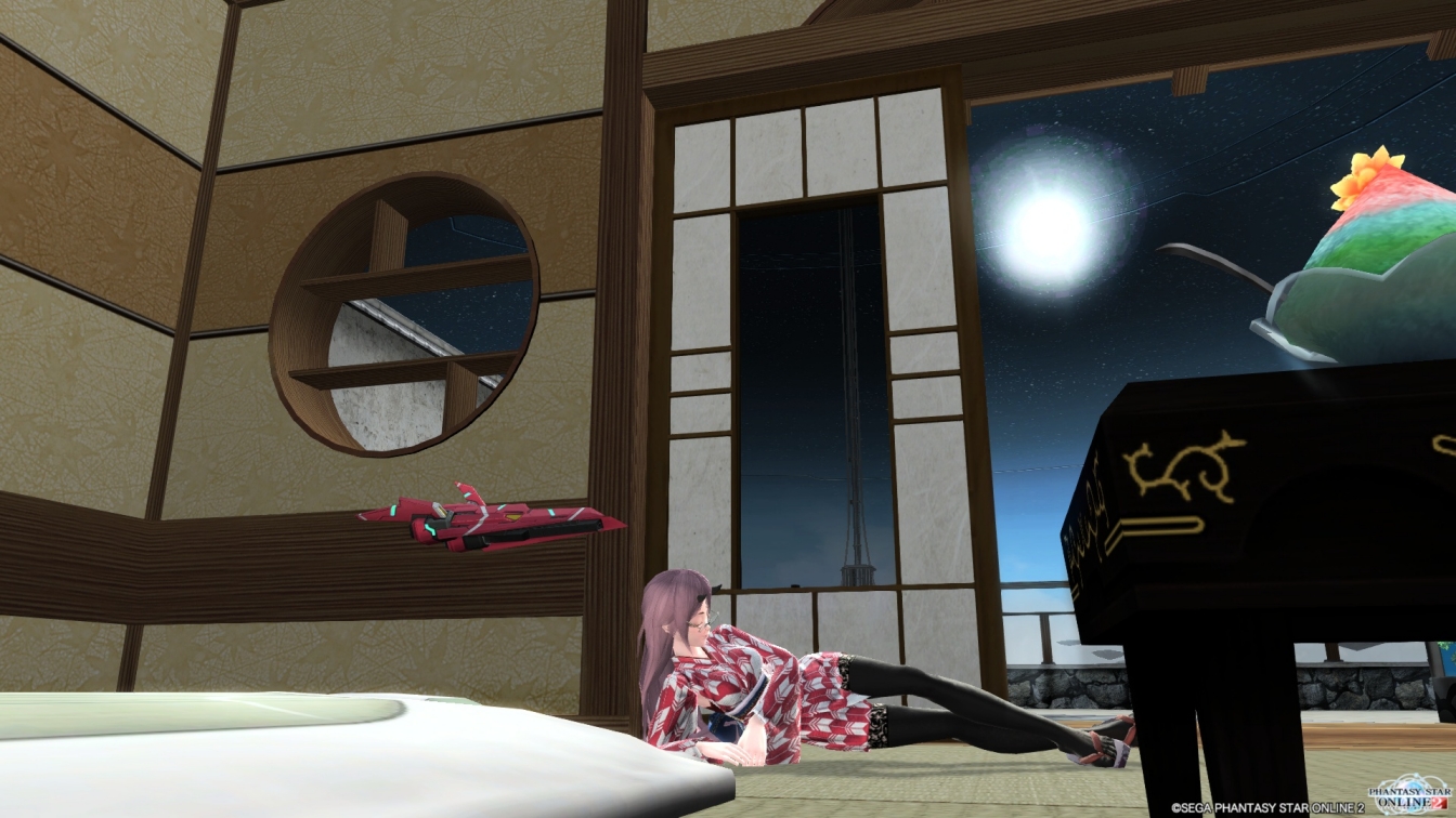 ホンモノの花火は見れないマイルームだけど、花火もどきはご覧のとおり障子の隙間から見える風情なのです。なんかフウリンとかマイルームに欲しいなって思いましたねぇ…あと、スイカ!