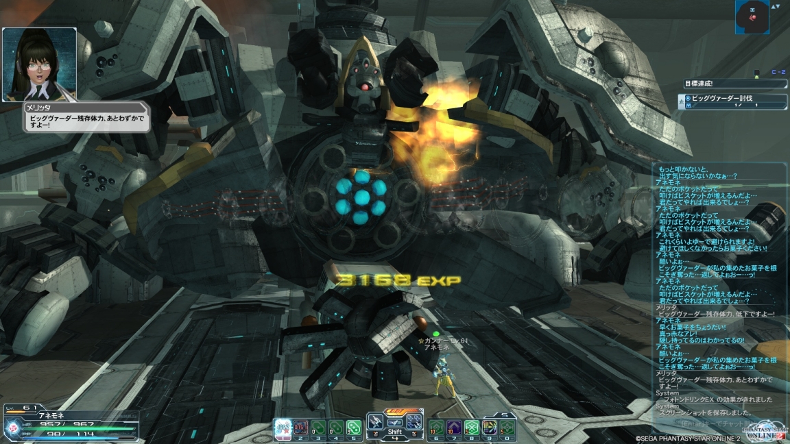死んで3回目に「あ、ライフルでてっぺんのミサイル壊せばいいんじゃん」と思ったけど、WB無いライフルの威力が微妙で結局ロールインフィで破壊して、やっとお邪魔攻撃を無効化して四度目の正直でヴァーダーも撃破ですよ。やっぱりガンナーにライフルって必要なのかな…あ、WB撃つ用か。