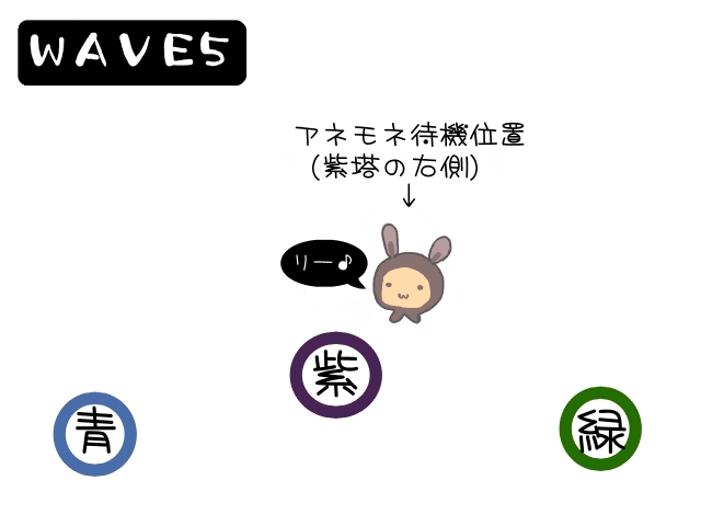 このとおり、アネモネは基本紫塔の右で待機してることが多いので…