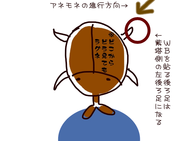 紫塔だと、塔の右側にいつも待機してるようにしてますので、左後ろ足にWBがつくと思います。